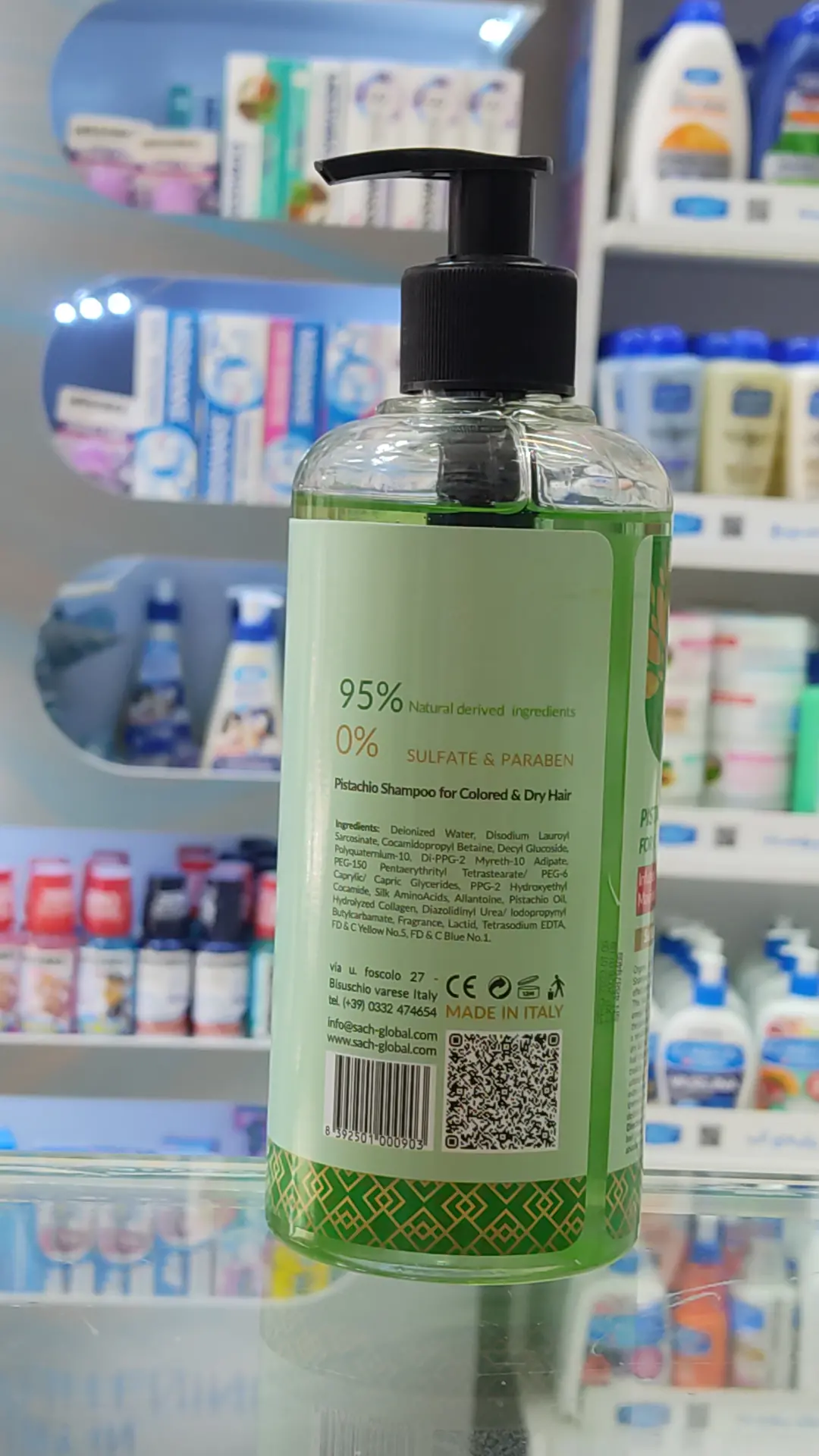 ترکیبات کامل شامپو موهای رنگ شده ساچ مدل پسته :