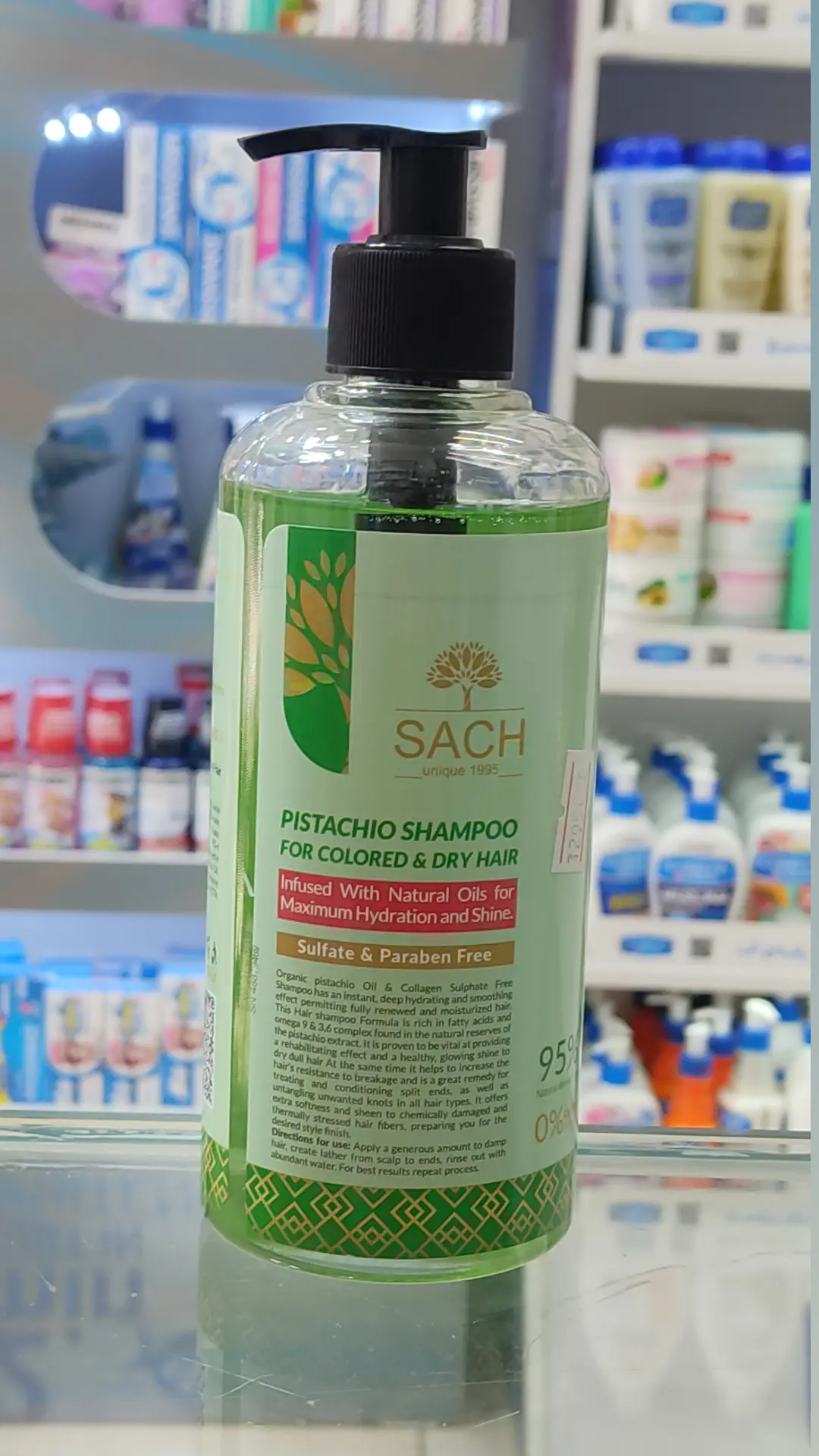 شامپو پسته ساچ با فرمولاسیون ملایمی خود ، آلودگی و چربی های موهای شما رو پاک کرده و آسیبی به رنگ مو شما نمی رساند.