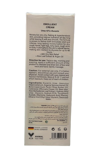 اوره این ترکیب خاصیت رطوبت رسانی عمیق دارد و میزان استفاده از اوره در این کرم ۱۰ درصد است و باعث رطوبت رسانی عمیق و همچنین به از بین بردن لایه مرده پوست کمک زیادی می کند.